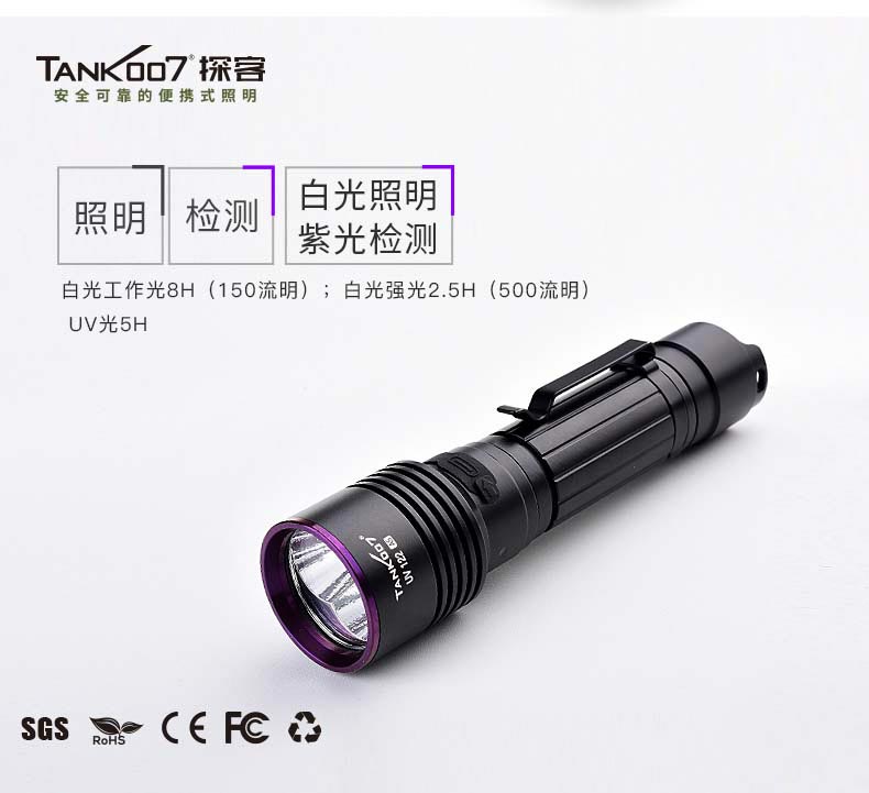 TANK007探客UV122雙光手電筒戶外徒步探險強(qiáng)光手電筒,紫外線鑒定手電