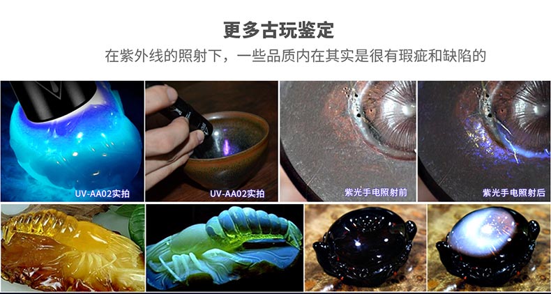 UV-AA02適用于獵奇尋寶、古董鑒定和尋礦野外探察、油墨固化、UV膠水固化、防偽標識、鈔票辨真等特殊物質的熒光反射