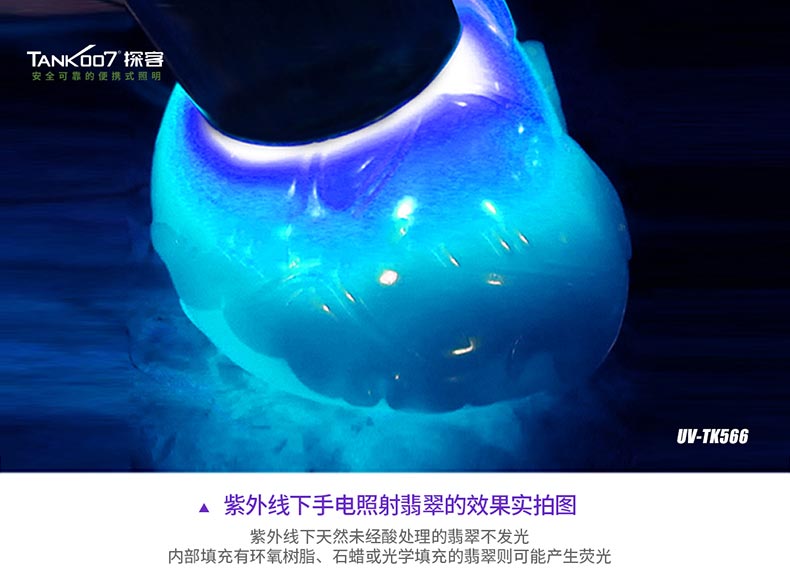 TANK007探客UV-TK566古玩鑒定/珠寶鑒賞紫外線手電筒:原裝進(jìn)口365nmLED,使用2*AA電池,UV手電筒特制鏡片,有效過(guò)濾可見(jiàn)光,降低可見(jiàn)光干擾,是一款專(zhuān)業(yè)獵奇尋寶、古董鑒定和玉石/玉...