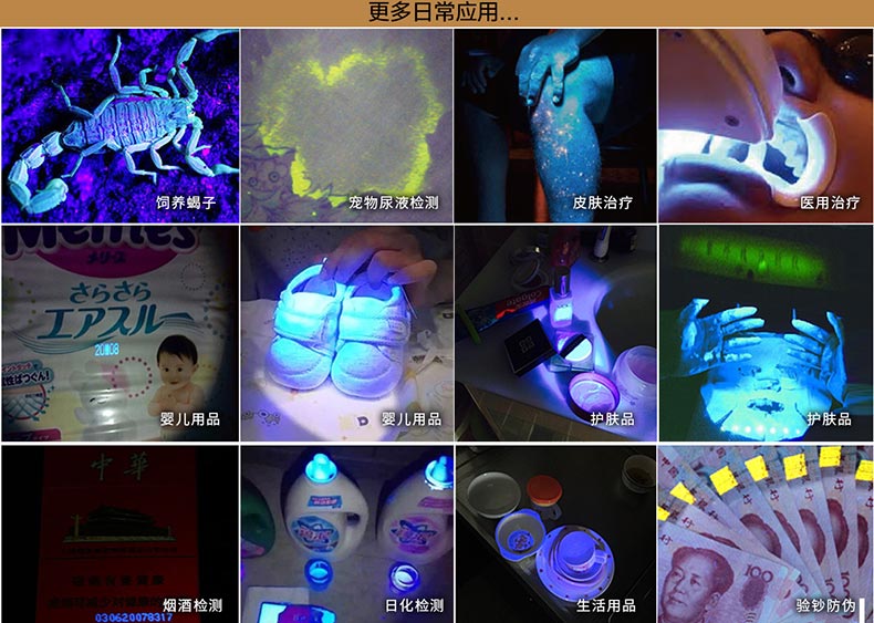3. UV手電筒特制鏡片,有效過(guò)濾可見(jiàn)光,降低可見(jiàn)光干擾