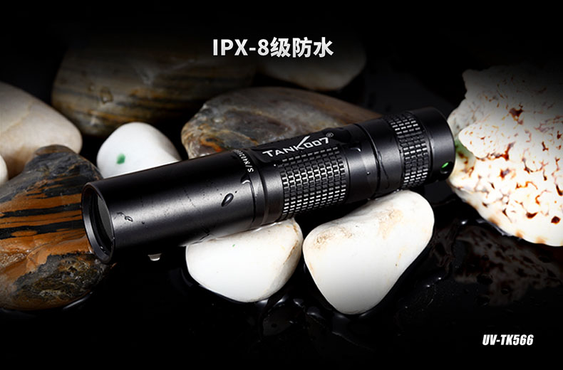④該款395紫光手電筒防護等級達到IPX8級別,在水深1.8米下持續30分鐘仍可正常工作。