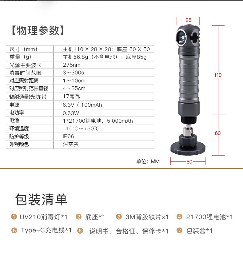 UV210紫外線殺菌消毒燈的UVC深紫外線光源:主要光波波長275納米,紅外感應(yīng)模塊:自動(dòng)檢測消毒,紫外線消毒燈適用于酒店,醫(yī)院,學(xué)校等公共場所進(jìn)行殺菌消毒