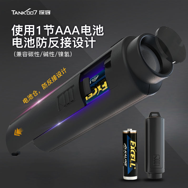 4、使用1AAA碳性/堿性電池或1AAA可充電鎳氫電池,采用物理防反接的結構,防止電池倒裝對手電筒造成危害;