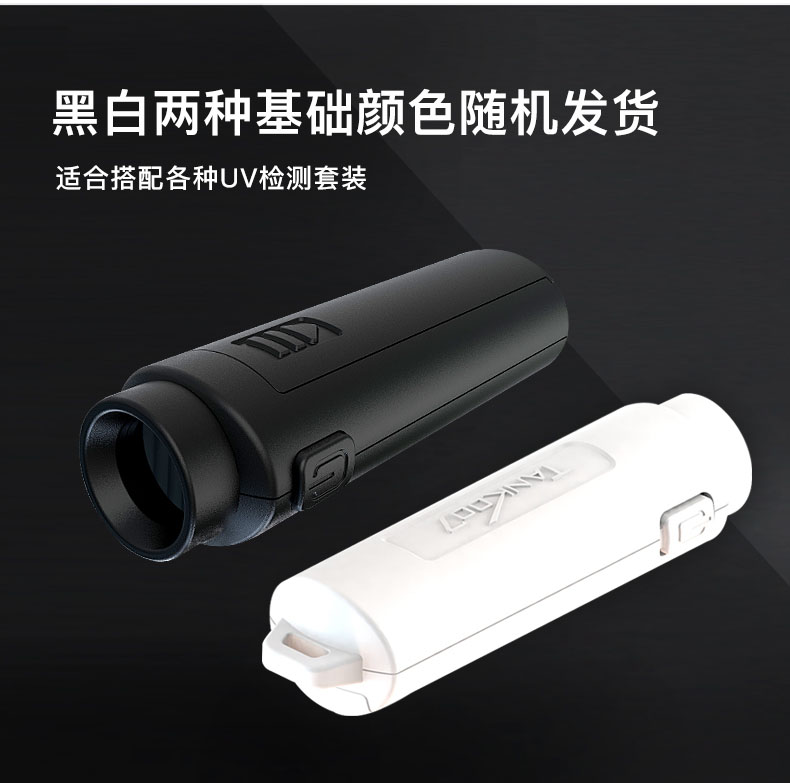 27.2cm長度,12g重量,輕巧便攜,黑白兩種基礎顏色及支持定制,適合搭配各種UV檢測試劑套裝;