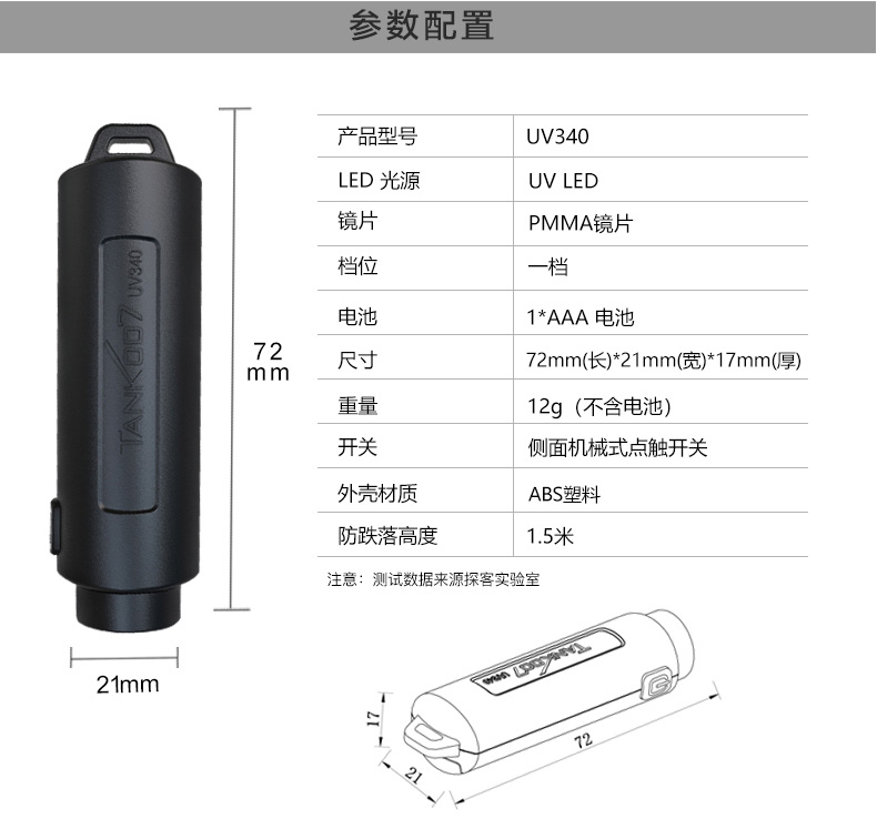 在線咨詢報價    點擊立即咨詢 下載產品詳細文檔 TANK007探客UV340紫外線試劑檢測燈 迷你試劑檢測熒光顯色燈  ...